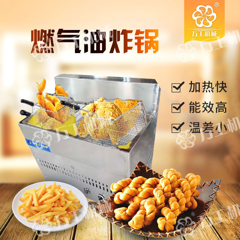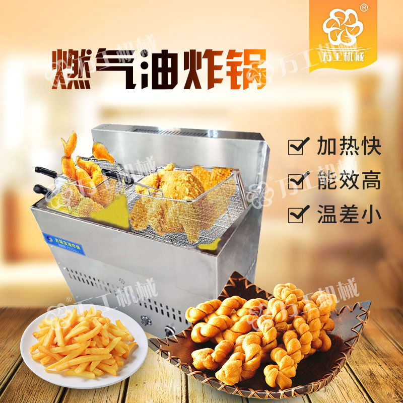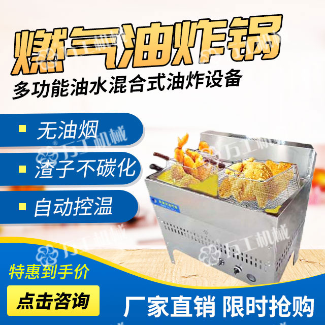 寶雞萬工機械生產(chǎn)的燃?xì)庥驼ㄥ伿且环N無煙型、多功能、油水混合式油炸設(shè)備,該設(shè)備采取從油層中部加熱的方式,控制上下油層的溫度,有效緩解炸油的氧化程度,抑制酸介質(zhì)升高,在油炸過程中自動過濾殘查、自動控溫,從而延長了機器的使用壽命。鍋體材質(zhì)為全不銹鋼,能效比高、清潔環(huán)保無污染,便于清渣,使用成本低,操作簡單、安全。